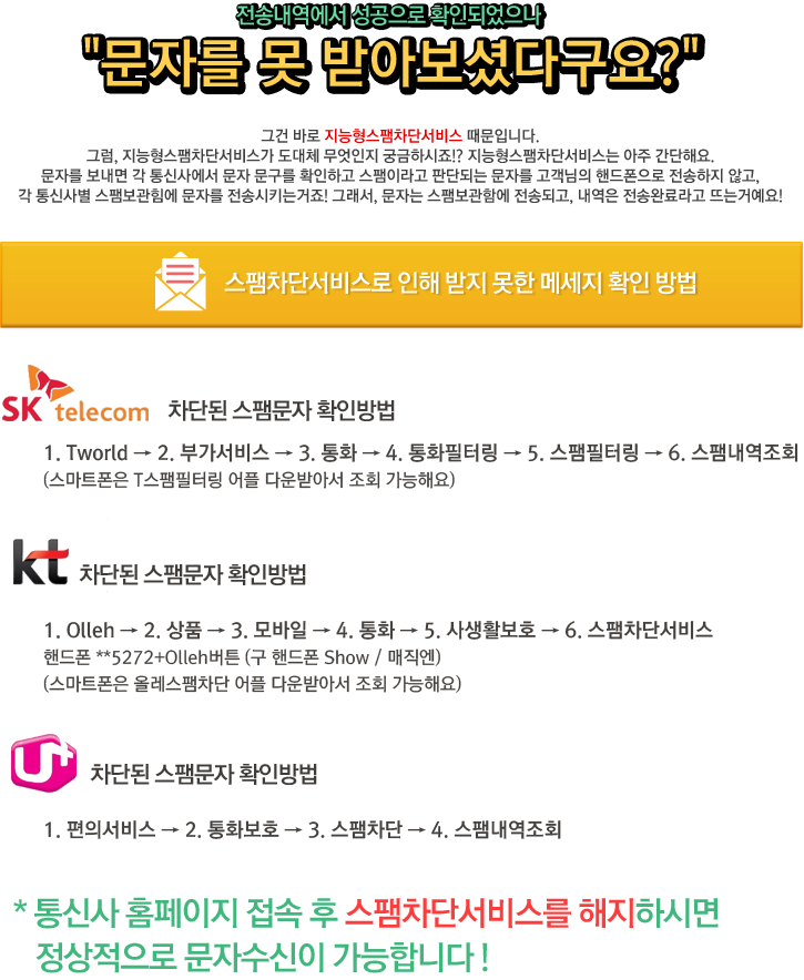 통신사별 지능형 스팸차단 부가서비스 가입안내